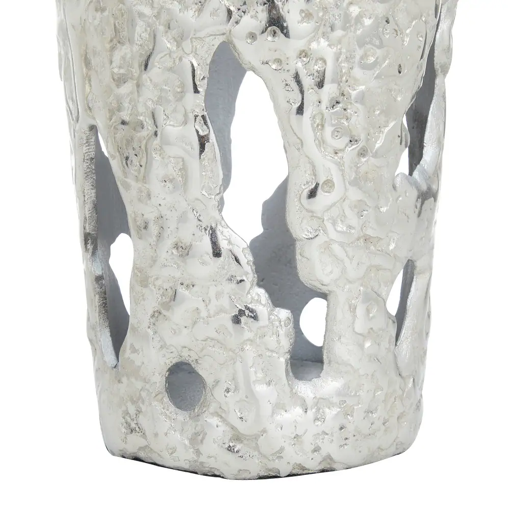 These tall Silver vases feature a luxurious cracked eggshell design and a round cylinder shape with irregular riming’s
