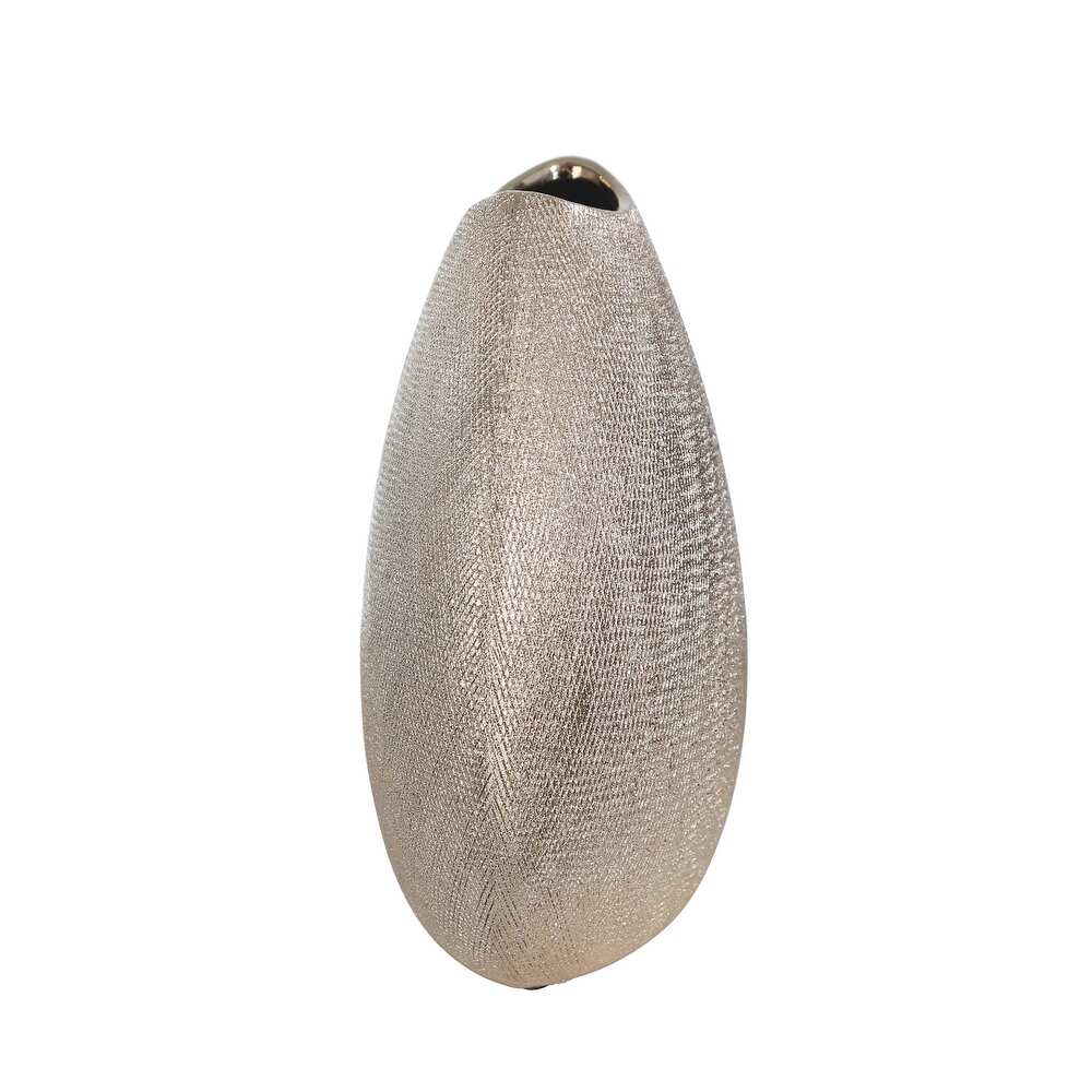 Elevate your decor with this textured organic ceramic vase in a luxurious champagne finish. Designed with a nature-inspired silhouette and etched detailing, this elegant piece adds warmth and sophistication to coffee tables, consoles, or office desks — perfect on its own or styled with fresh blooms.