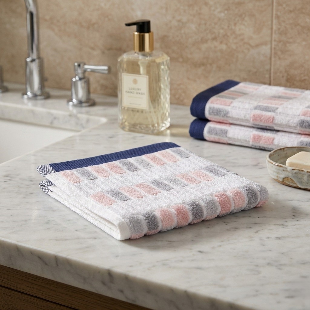 Enhance your bathroom essentials with the RK Blush Grid Wash Cloth, thoughtfully designed to combine modern style with everyday practicality. Featuring a subtle grid-inspired stripe pattern in soft blush tones, this wash cloth brings a light and elegant feel to your bath collection.