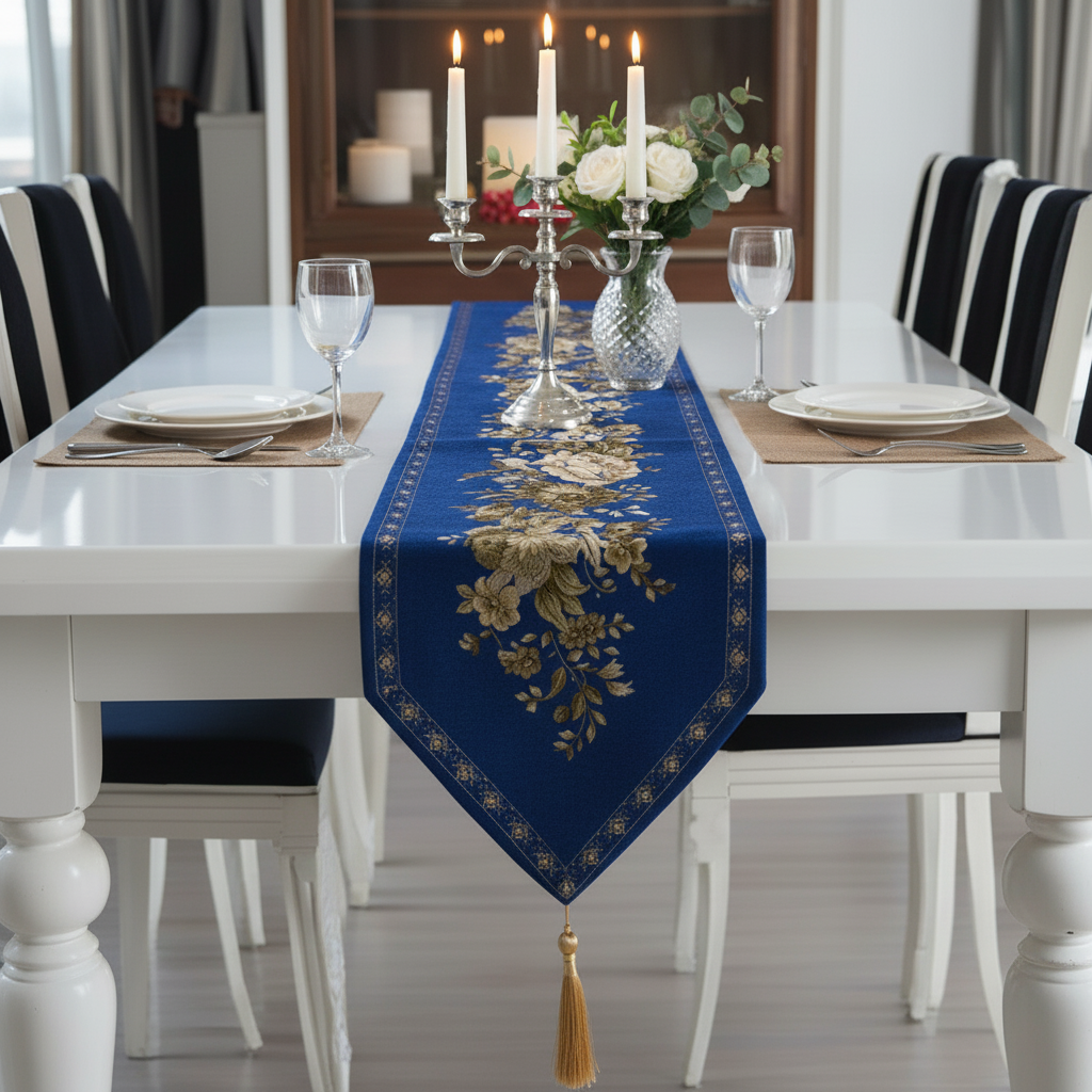 The RK Royal Blue Jacquard Runner isn’t just a table accessory; it’s a statement piece. The Royal Blue color symbolizes warmth and hospitality, while the premium jacquard weave adds a subtle 3D texture that catches the light beautifully.